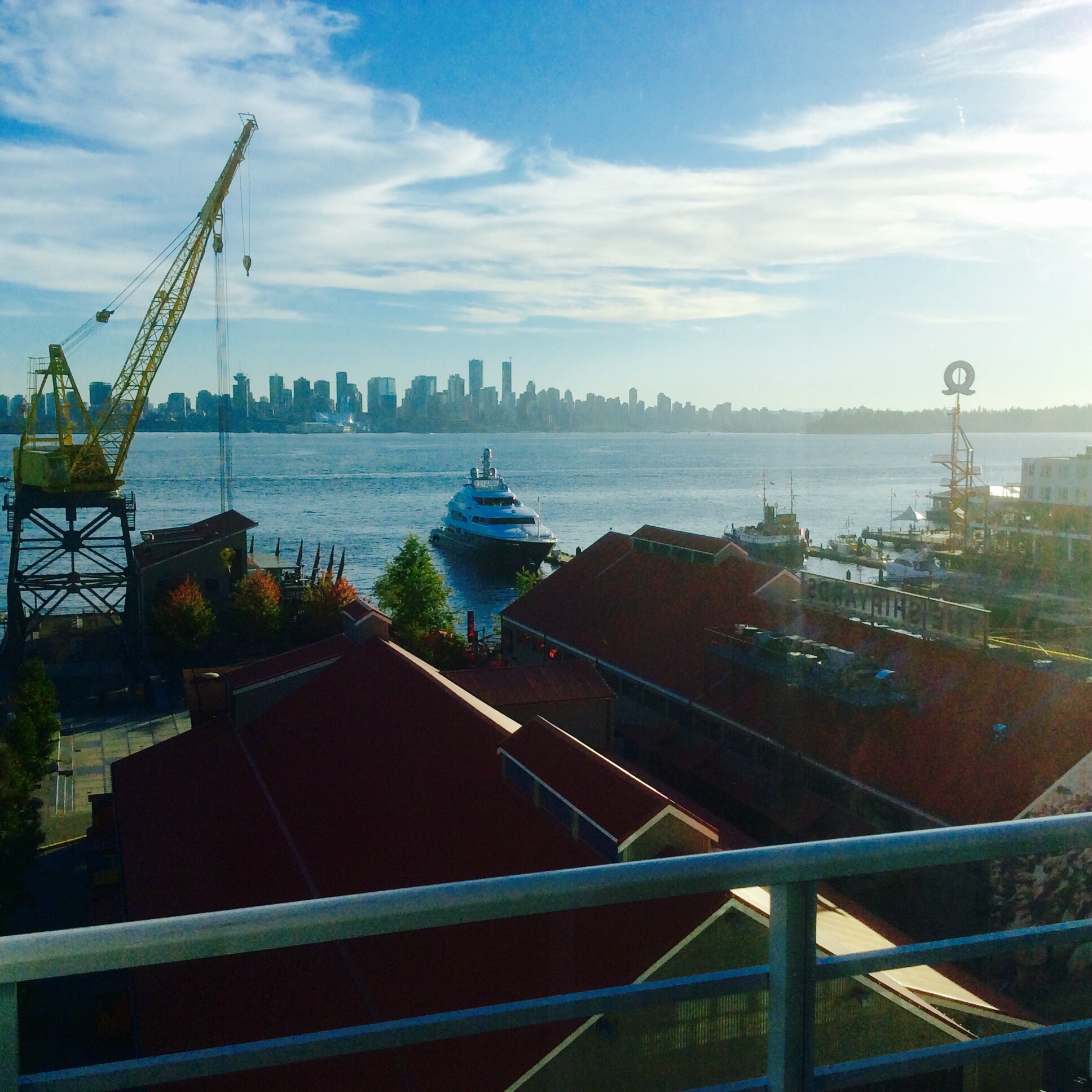 It has been a long day but we are in Vancouver. Tom took us to catch our 7:00 AM flight to Seattle where we picked up a car and drove north. We are staying in a new hotel in North Vancouver. Thanks for the suggestion Louise Wallis. The area which historically housed ship building and other maritime related operations is being converted into a residential area of high-rise apartments and hotels. This is a picture from our balcony looking back on Vancouver.