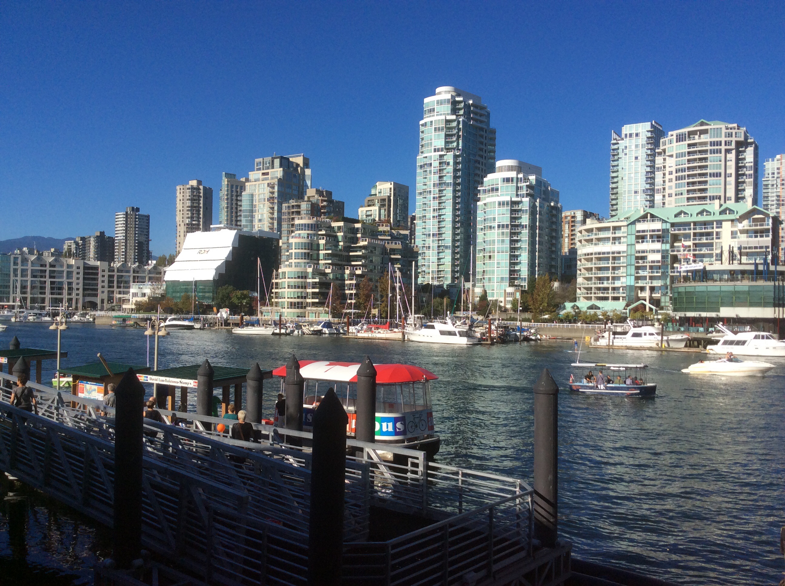 We returned to our hotel to drop off our car, have lunch and take the SeaBus from Lonsdale Quay to Downtown Vancouver. It was a beautiful day with temperature in the low 80s. The passenger ferry is a very convent and economical way for people from North Vancouver to get to Downtown. Round trip fair for seniors is 2.75.