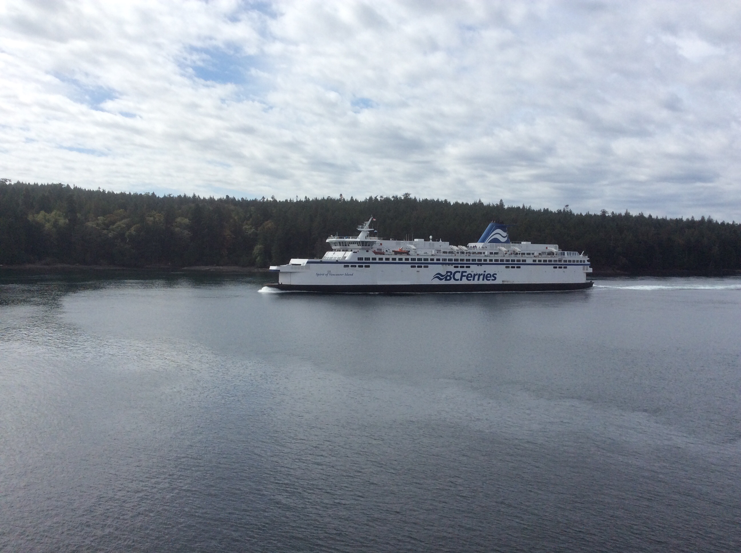 Drove to Tsawwassen, try pronouncing it, to catch a ferry to Swartz Bay on Vancouver Island. We were loaded onto The Spirit of British Columbia which can carry 2100 passengers and 470 cars. On the 25 nm trip we passed a sister ship shown below.