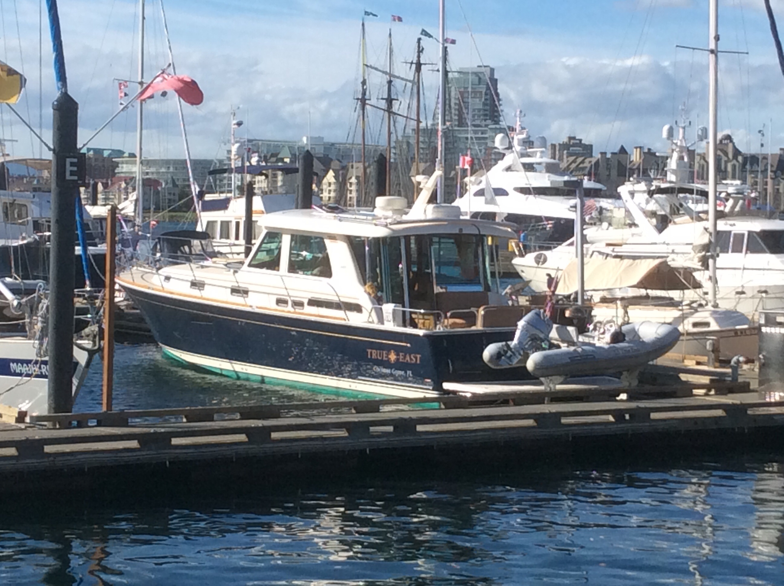 Walking back to our hotel we spotted a 48 ft. Sabre in a inner harbor marina and walked down to speak to the owner who had it shipped to the West Coast and uses it heavily.