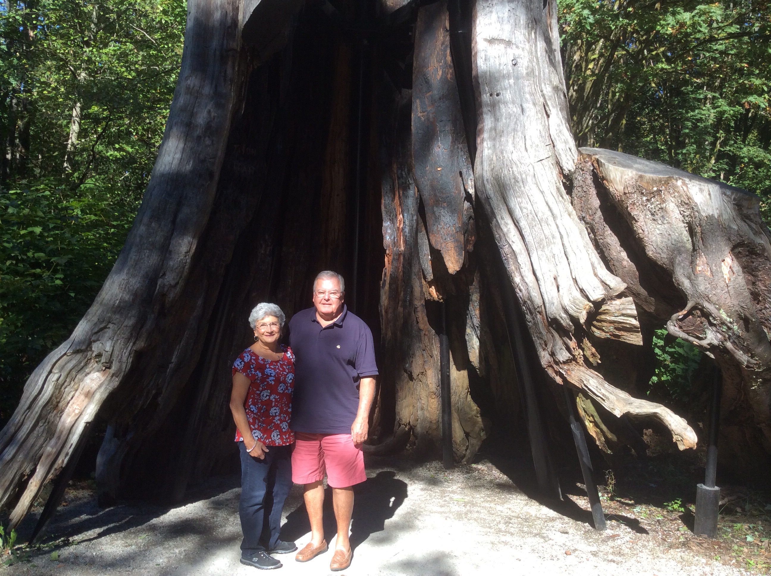 We spent the entire morning in the park and only saw a portion of it. The pictures below show some of the parks highlight and include the sea wall path which circles the park, the totem pole display, and the two of us in a hollow tree.