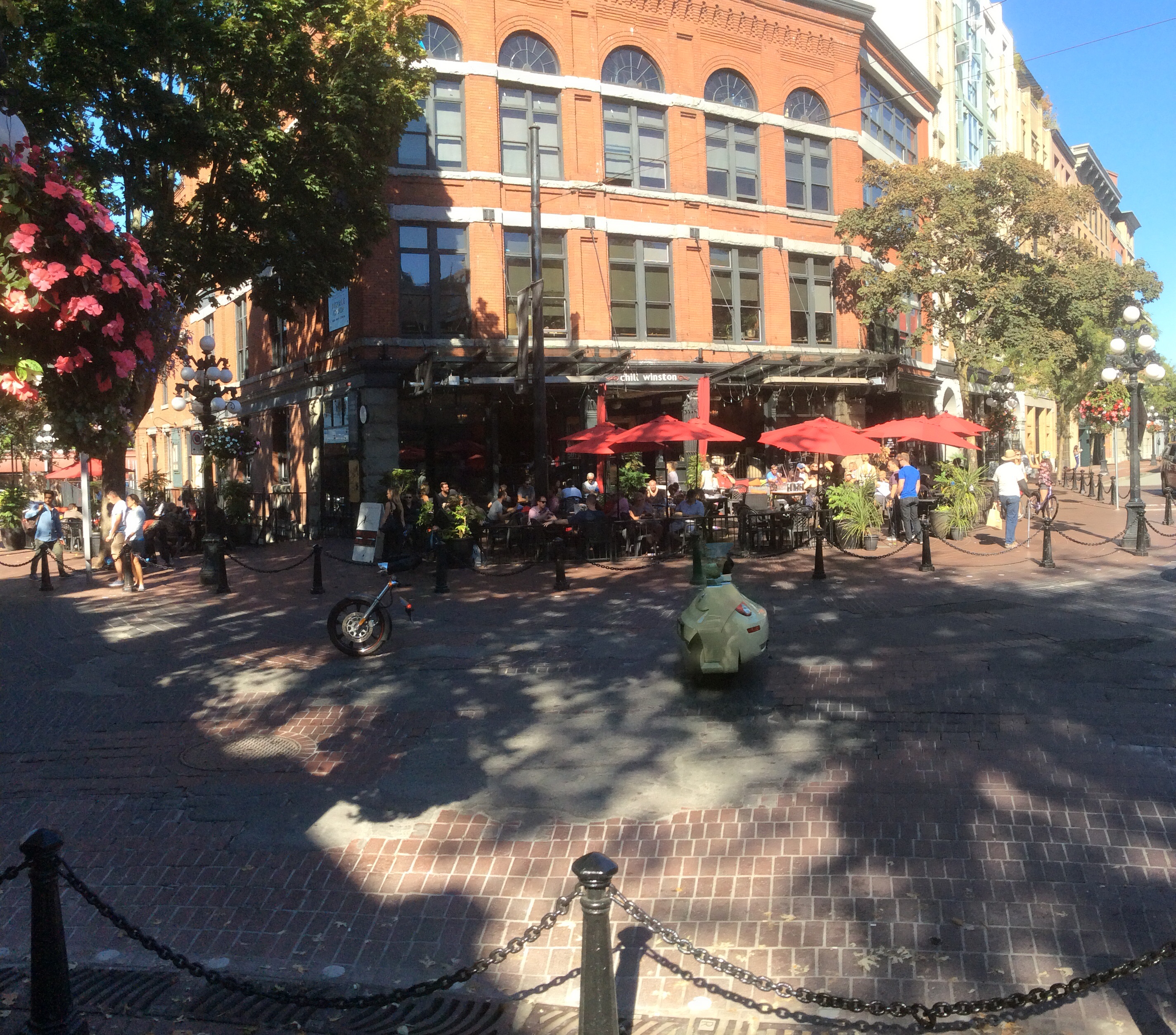 We then walked to Gastown and Chinatown. Gastown is where the city began. Today heritage buildings now house cool bars, boutiques,and galleries. A Gastown landmark is the steam clock which whistles every 15 minutes. Below are some Gastown scans including the clock.